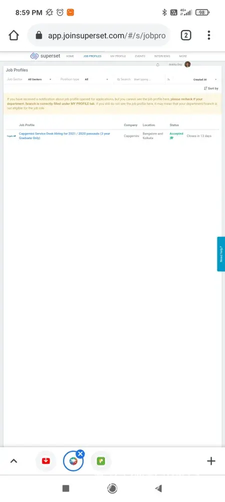 I have received the loi from capgemini more than 2 weeks ago. I submitted all my documents and it is accepted in my superset account. Still I haven't received any offer letter. In the mail I don't have my recruiter's mail i'd or any phone number. In my superset account it is showing that it will be closed within 13 days. Someone called me for following up that can I able to join at kolkata office. I agreed. But after that nothing. What should I do?