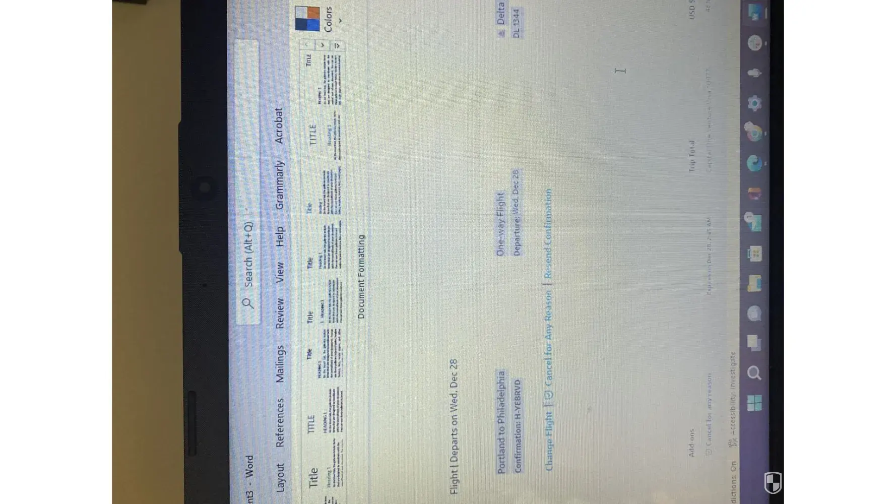 - Logged on to make a change to the flight due to it now showing a layover. It was originally a direct flight from PDX to PHL on Delta and I HAVE PROOF!
