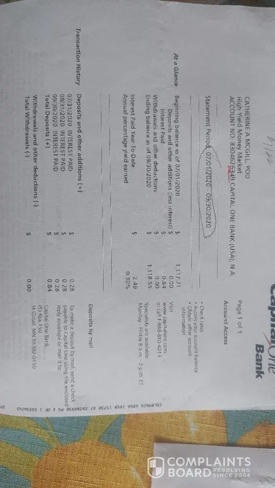 I, Catherine A McGill, closed two savings accounts in Feb 2023. After waiting two weeks and not having received any money, I attempted a call.