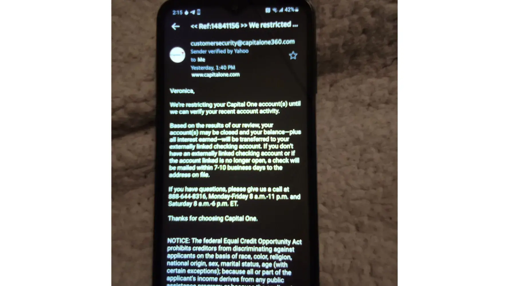 Never had I had any issues with Capital One until recently