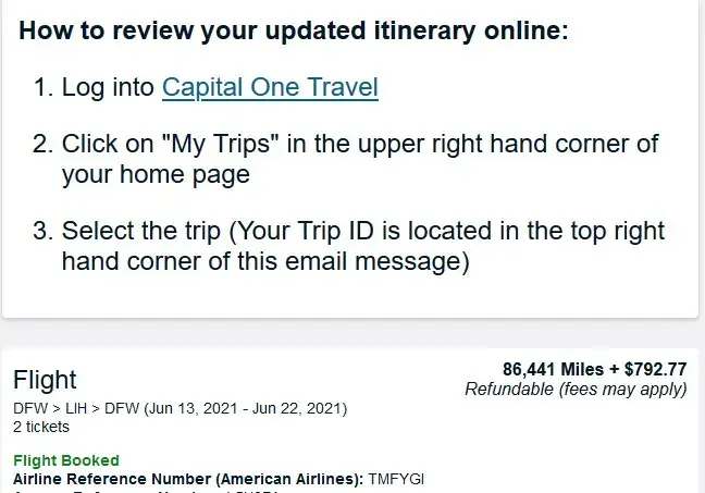 Capital One Flight booked with Rewards