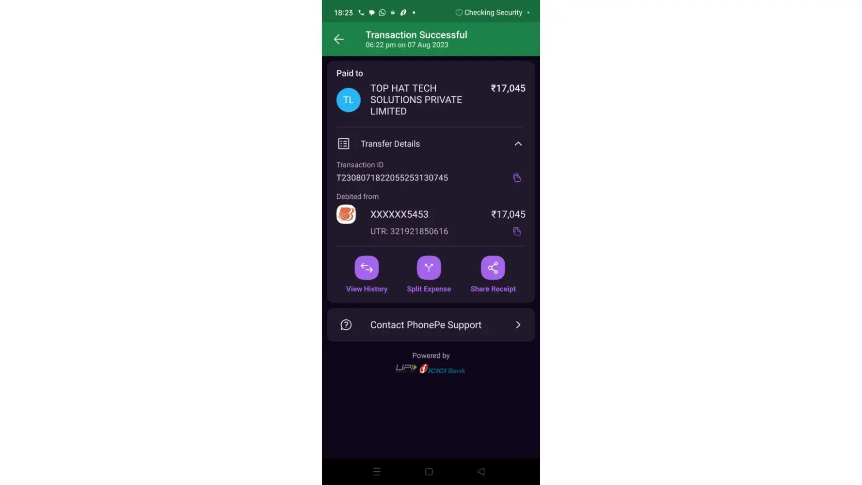 Refund amount