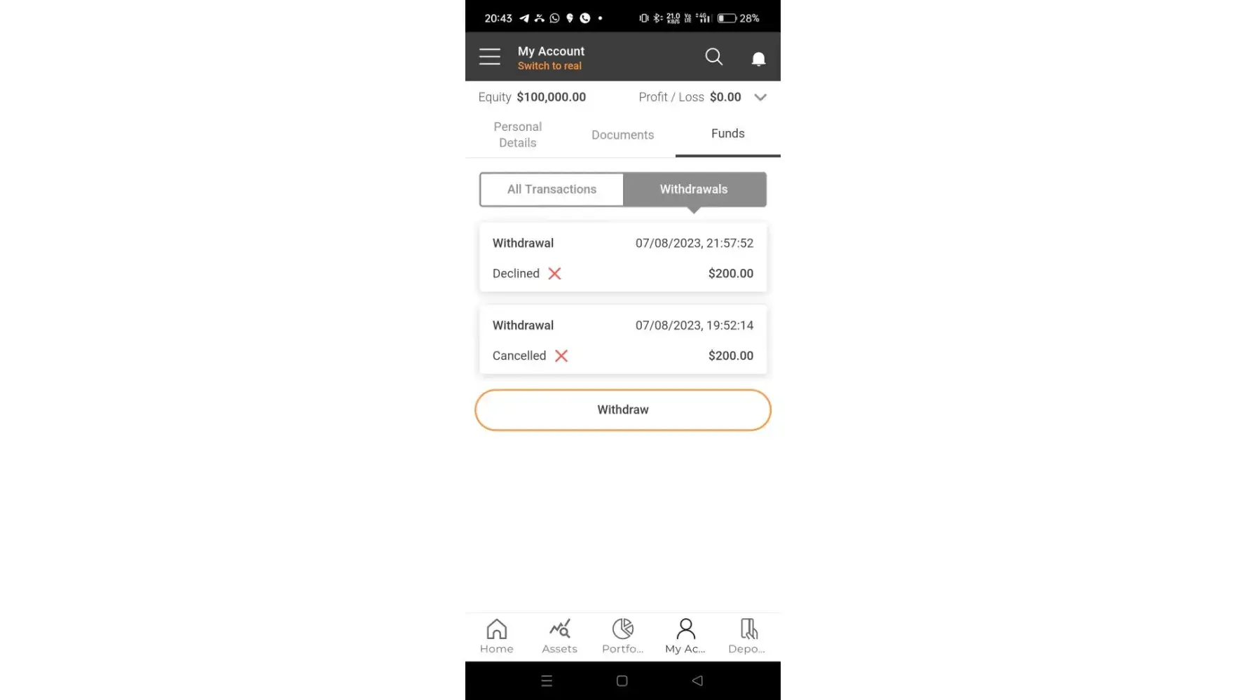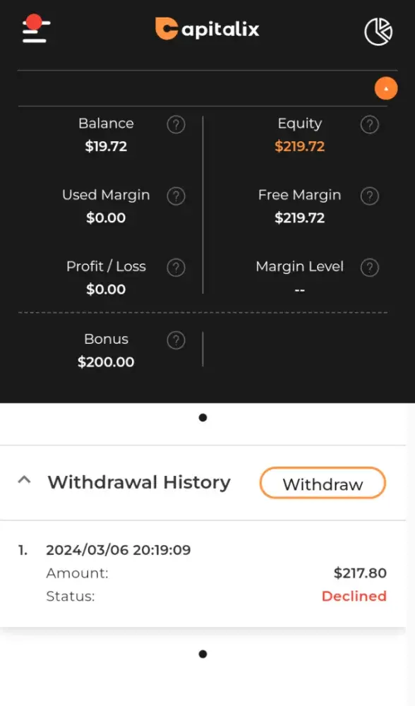 But on capitalix app side its rejected my withdrow application.