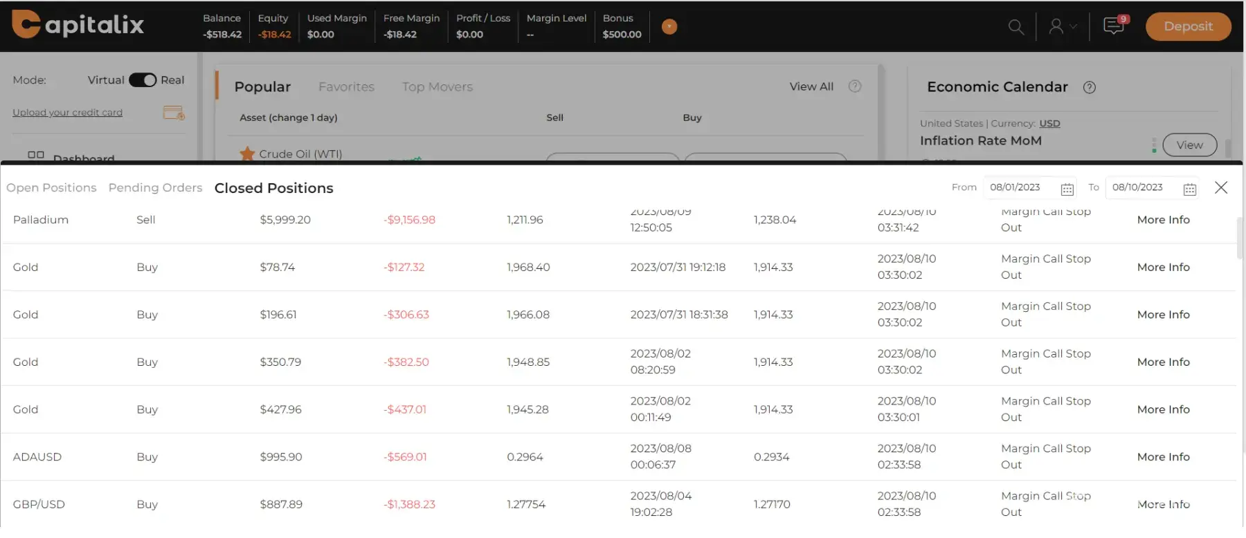 Regrettably, Reyan's advice regarding trades involving AUDUSD, GBPUSD, and Palladium proved to be erroneous, resulting in the complete depletion of my account balance. What's concerning is that these trades were executed without my consent, and CapitalIx closed them on my behalf.