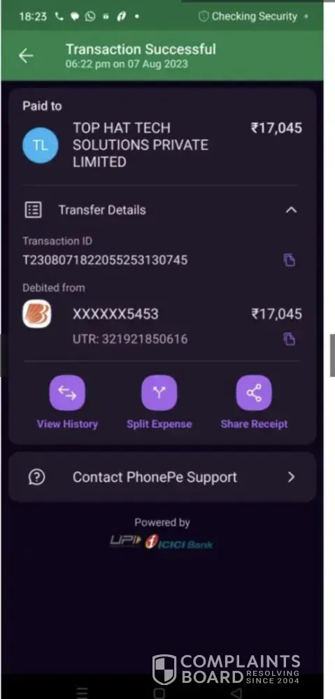 Please file complaint nd help me to refund my money