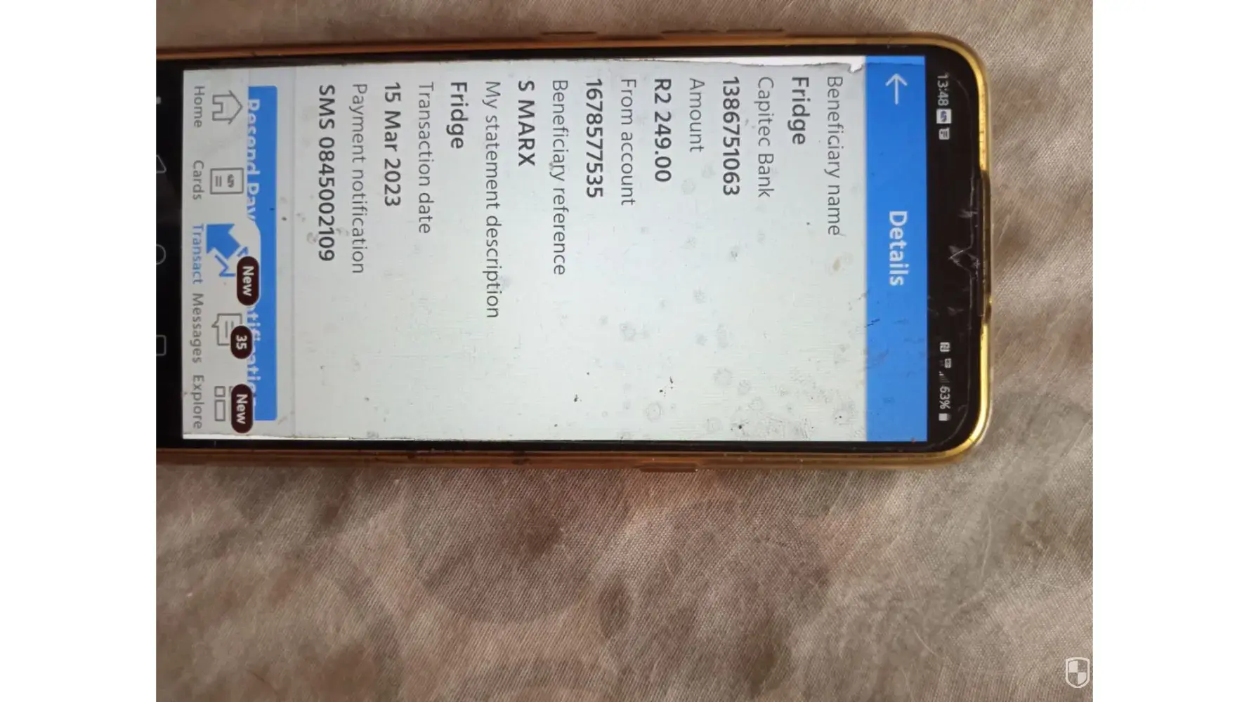 I received the money into my bank account the following day on 2022-11-24 and when I tried to pay the money over to my vehicle Finance company, Capitec froze my account.