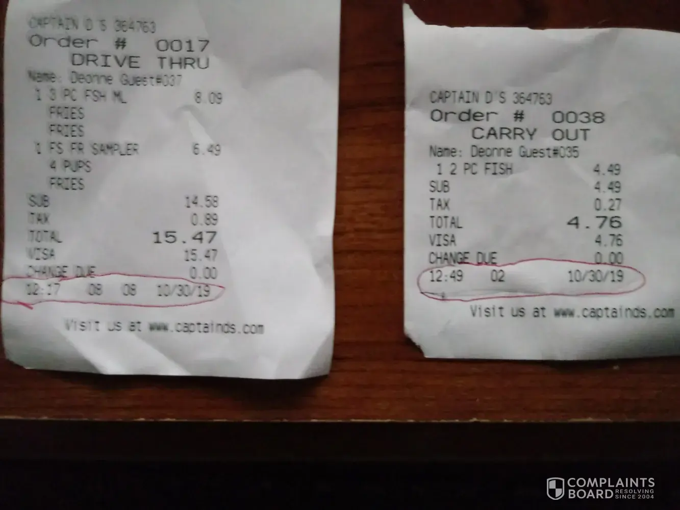 Just left the Caption Ds in Porter Texas. We ordered our food got our condiments and sat down. The girl delivers our food to the guests that were after us. The lady at table reached across table and grabs the corn out of the plate that should have been mine. Then says oh this isn't our food. Then throws corn back in plate as man is putting hushpuppy back...
