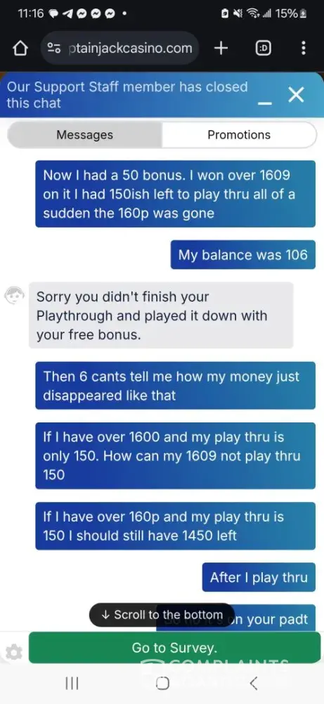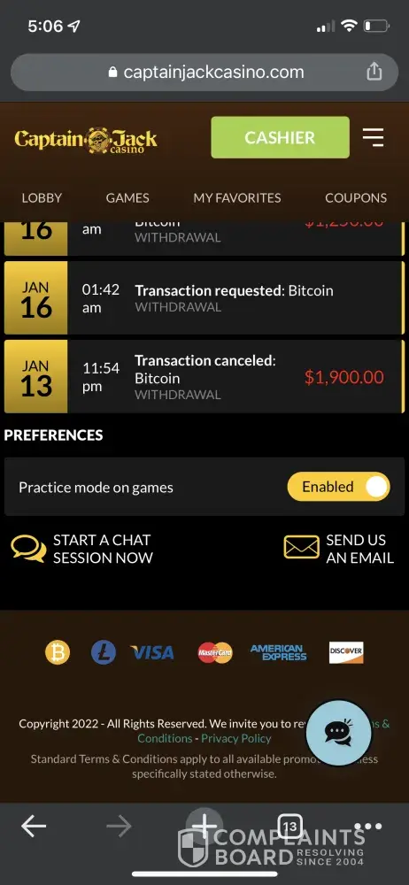 I made a deposit on September 24 at Captain Jack casino i I got a no rules bonus. I won and I wanted to withdraw $850 of my winnings I do know that they take any bonus that you receive out of your winnings which is fine but it's been 18 days and I've been lied to repeatedly about my withdrawal I've done everything they have ask asked it states in their terms and conditions that all withdrawals will be Approved within seven days again it's been 18 days and nothing has been done I've spoken to them on numerous occasions I have screenshots of all my conversations can you help me resolve this issue