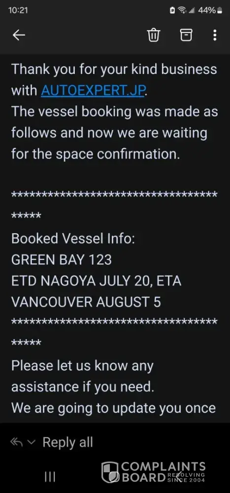 Read full complaintAutoexpert.jp - Auto exporter