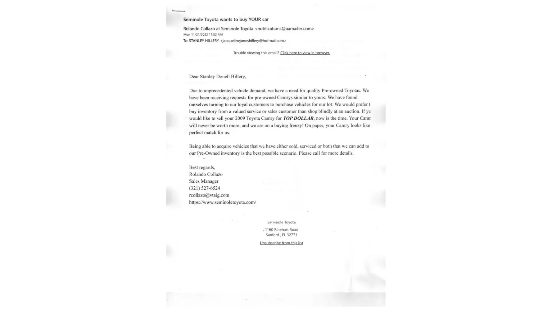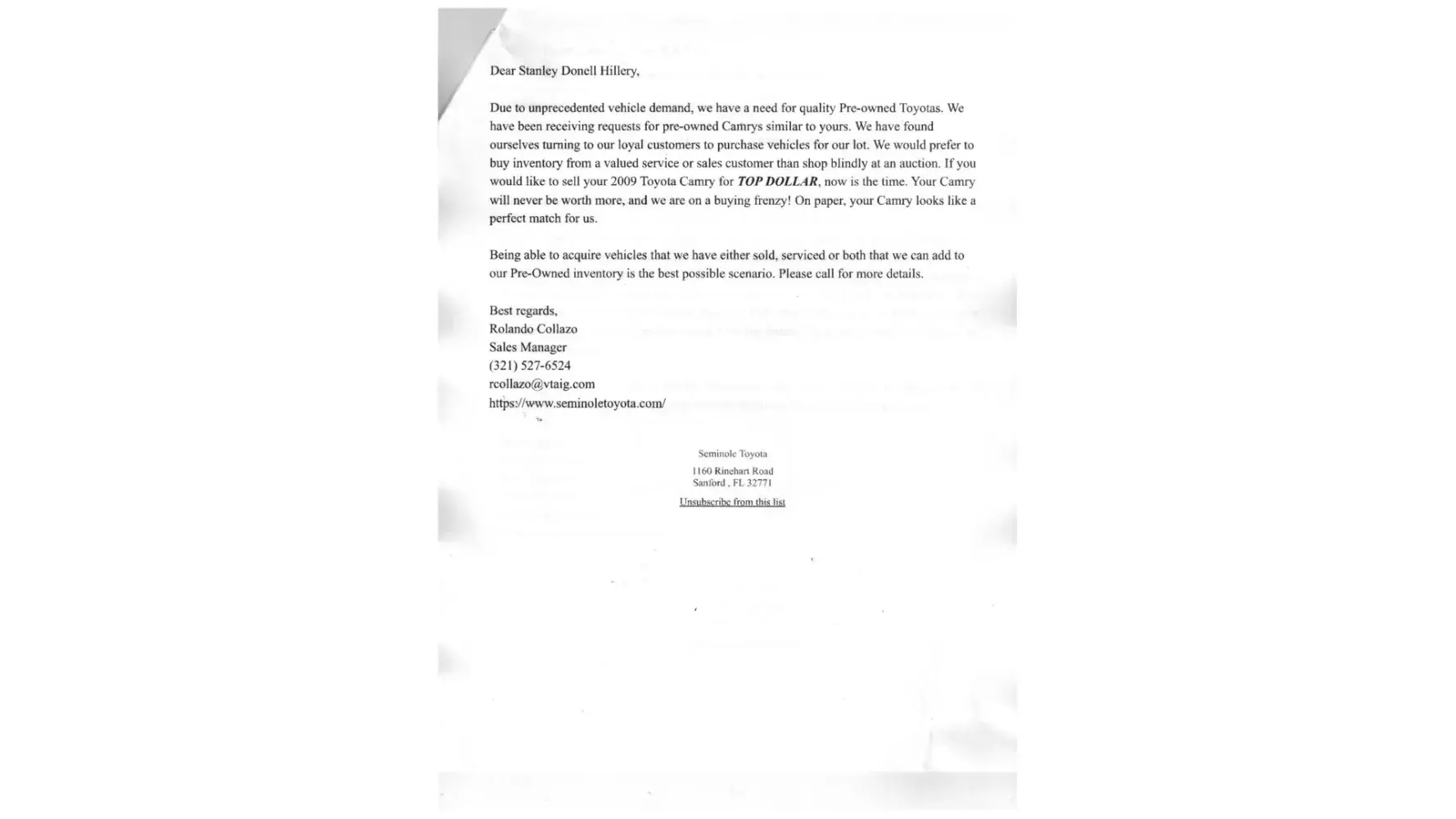 Read full complaintSeminole Toyota - Misleading information given for my 2009 camry