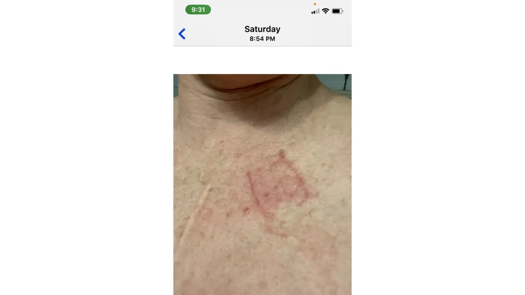 The BIOTEL MCOT 30 day heart monitor absolutely destroyed my skin. The darker red areas feel as if they literally fried (they are elevated and harder than the rest of my skin). It gave me blisters and I think my skin is going to scar. Never again. Completely disappointed and absolutely not worth it.
