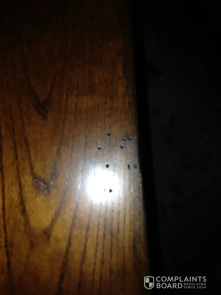 After calling customer service I was told to take photos and contact customer service again via e-mail. I did. I was then told the holes and were "wood holes are characteristics of the wood. The floor model will have the same characteristics. ." I did not agree. "Wood holes" that occur naturally in the wood are not symmetric.
