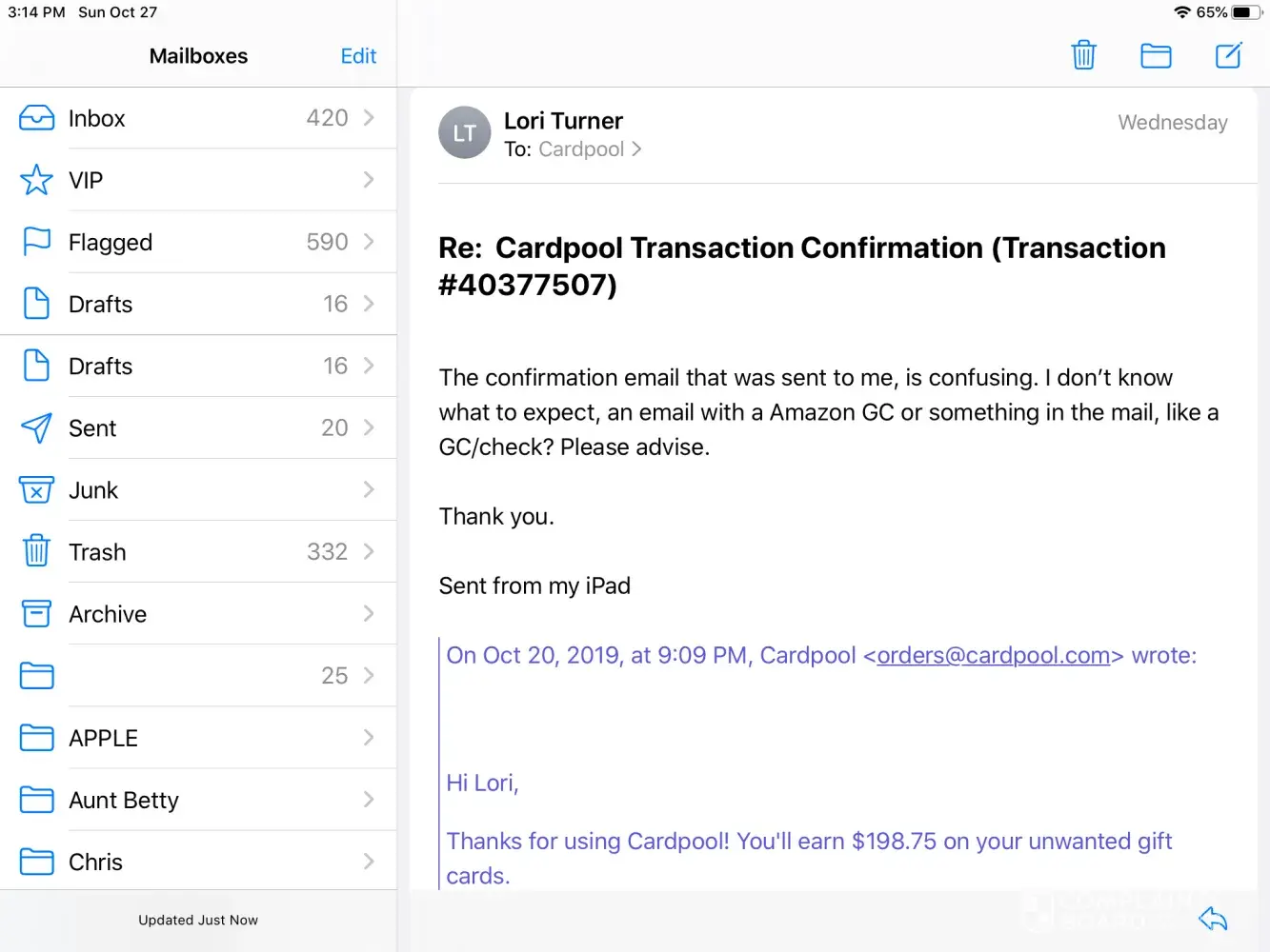Beware of cardpool.com The e-gift card that I purchased was not the same one I received & they refuse to make it right. Absolutely horrible so called customer service. They do not read your emails & respond w/ basically --- we don't care that we charged you for a gift card that you didn't receive. We will not make it right in any way. They will soon have a class action lawsuit filed.