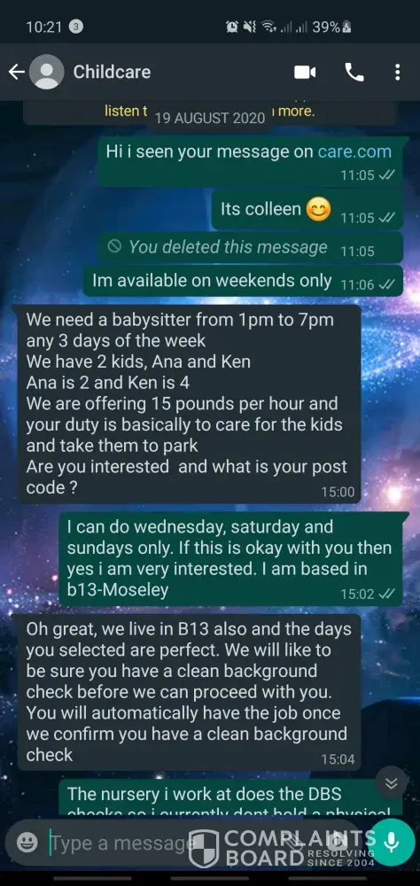 As you can see in photo's they committed fraud using my bank details. I filled in a normal registration form. Then they sent me another which I didnt fill in as it was clearly fraud. I reported this to Care.com and they refused to refund me. The payment from my bank says "care.com" so they are impersonating them. I called the person back and of course, they have blocked all calls. Im sure im not the only person they are doing this too.