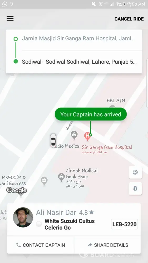 On 3rd Feb at 8:12 pm I have opened careem app and find a car that I have found a car name of person is shown on my cell phone with help of true caller is Asfand yar [protected]) I have called him 3 three times but he received my call but didnot talk to me and talk to an other person. unfortunately i have cancel ride.