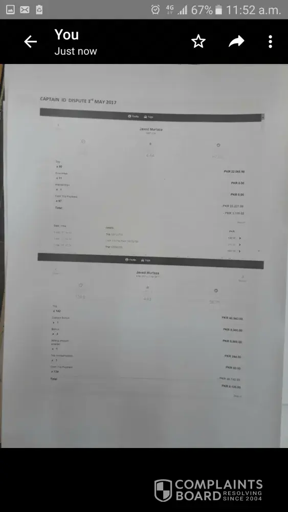 62 trip not bonous in car no534 cell no [protected] arshad mahmood not bank account transfer in money.please help careem