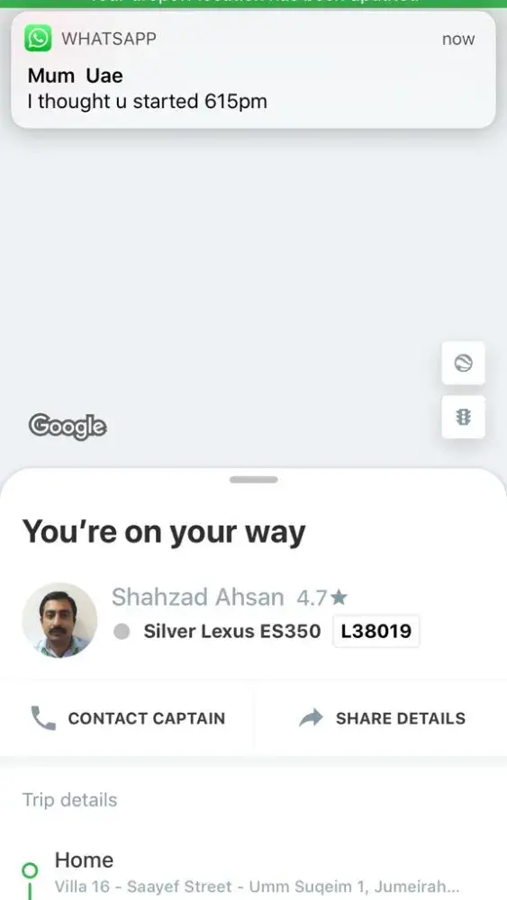 I felt worried that my son is late inspite it's shown in the app that he reached home then I called my son and he told me what happened and I spoke to the driver who talked rudely and I asked my son to leave the car and u believe he walked sick for 10 mints to reach home and I heard that driver still shouting over the phone that he's gonna call the police