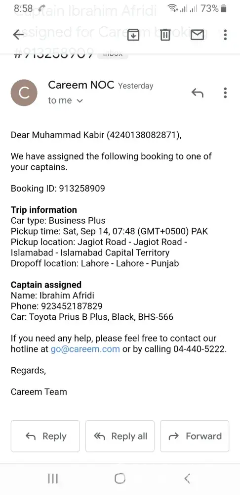 sir salam w rahmatuallah, sir me abi 2 week pehly karachi se islamabd ayaa careem me kam karny k leye, me karachi me careem ka first 3 captain me se ho our 2015 se ab tak careem me garhi chala raha ho, sir pechly week yeh ride mere pas aayi our es ko jaha jana tha our jo hamari zimadariii hei ride aany k bad, me ne wahi kiyaa our credit card ki ride thi our customer ne muj se cash bi 3000 leye our tip me add karny ka kaha our add bi keye, mgr sir ab yeh ride na portal me show ho rhi hei our na sir yeh pesy mujhy careem se mely hei, sir 23 thousnd ride k hei our 3000 cash customer ne lahor me muj se leye thy, our sir me taqreban 7 se 10 martaba ofice ka chaker maraa hoga our line me karha ho k pura pura din zaaya hojata hei, our sir meri garhi dubai islamic se leassing per nikalii hui garhi hei, sir ab tak ofice ki taraf se koi musbath jawb yaa karwai nahi hui hei, sir me ap ko yeh bi batata chalo k yahi per ek our busnis plus driver se meri mulaqat hui hei our us ko me ne apni stori bataii sir itefaq se usi driver k sath esii pasenger ki esii tarah lahore aany jaany ki ride hui thi our same meri tarah us kaa bi portal me na ride show ho rhi thi our na pesy us ko mely, sir agr pasenger koi fraaad hei tu humy kesy pata chalega k yeh pasenger galat hei our es ne careem boking apps k sath kuch kiya hua hei, sir plz hum ghareeb log hei our yahi hamari roozi hei, pasnger k sath ab tak me rabta me ho our wo muj se daily bat karta hei our demaand karta hei k 5000 rupy send kar doo our me ap ki lahor wali ride verified kara doga our ap ko pesy mel jayengy, sir us k gar kaa bi pata hei plz sir ap log koi tareeqa nikalo k yaa tu pasenger ko pakrhy yaa mujy apny trip k pesy delaa dey