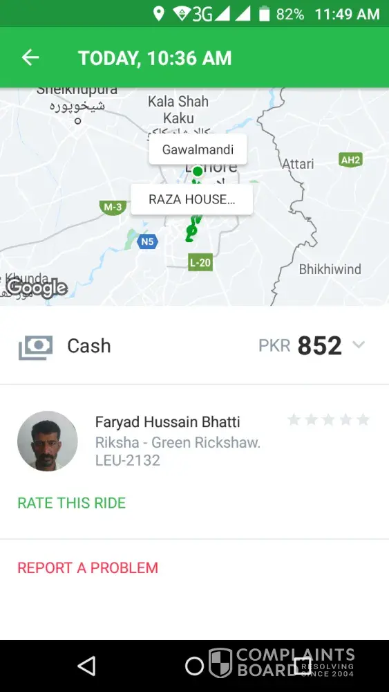 After 5 minutes he cancelled the ride and due to his mistake I got PKR 93. Now I want to complain against him