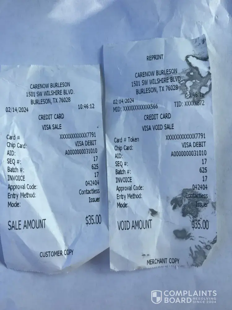 I receive free RediMed virtual service but decided to physically go into White Settlement CareNow to be seen with the hopes of receiving a thorough exam because I was having severe burning of the stomach but NO the doctor rushed in, asked maybe 3 questions and wrote 2 prescriptions and was GONE! NO bloodwork, NO urinalysis... NOTHING! I did not feel like a valued patient/customer at all.