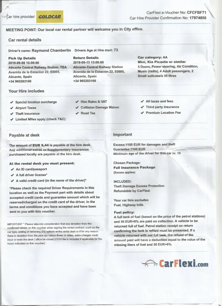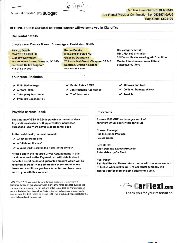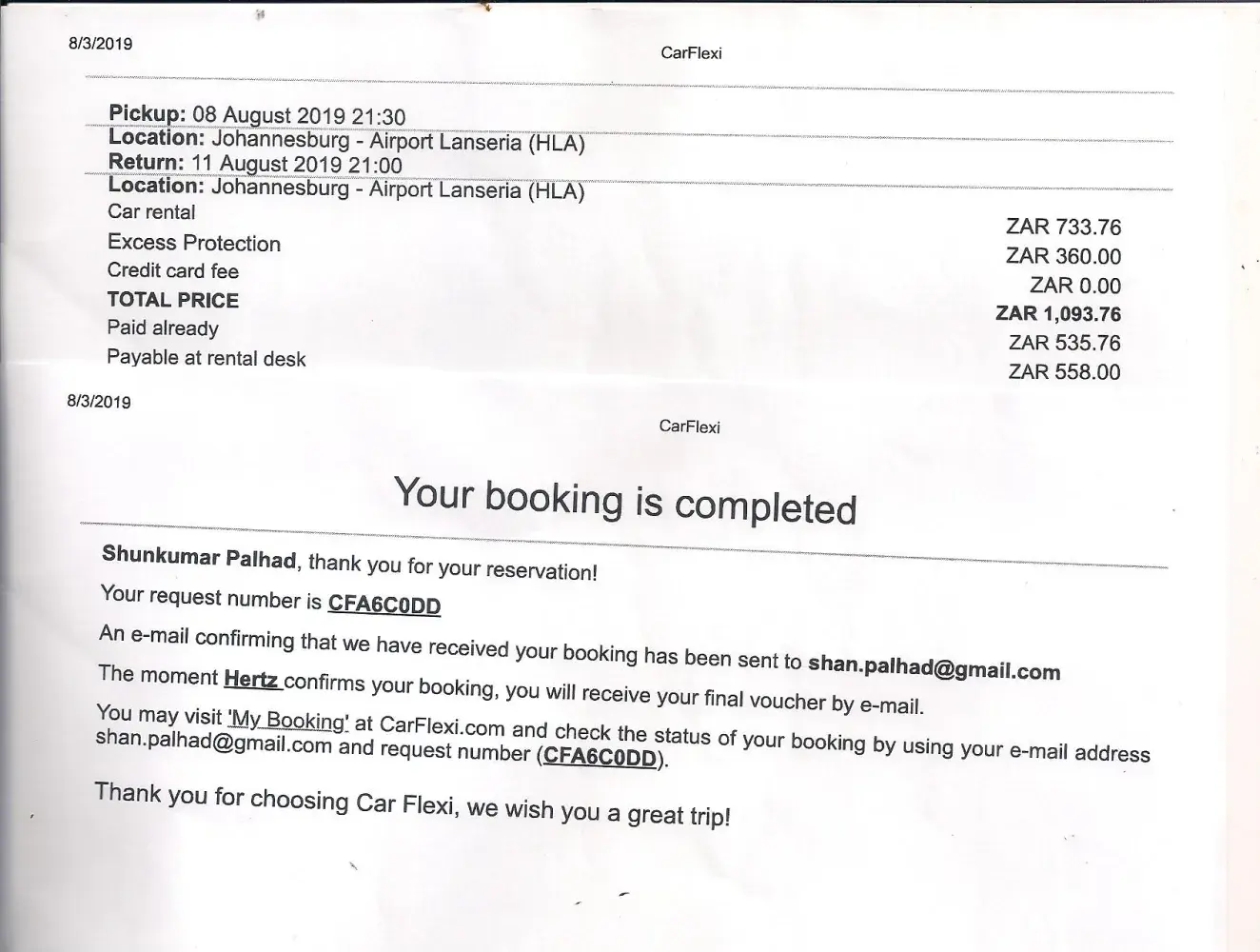I have rent a car through Car Flexi (CarFlexi Order CF550408)
