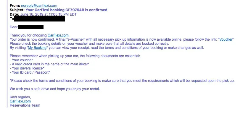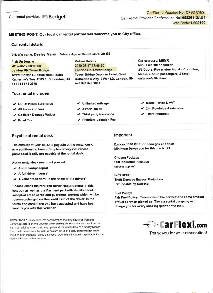 The voucher and confirmation email is attached to this email. I was advised to write to this email address by the carflexi helpline in order to claim compensation.