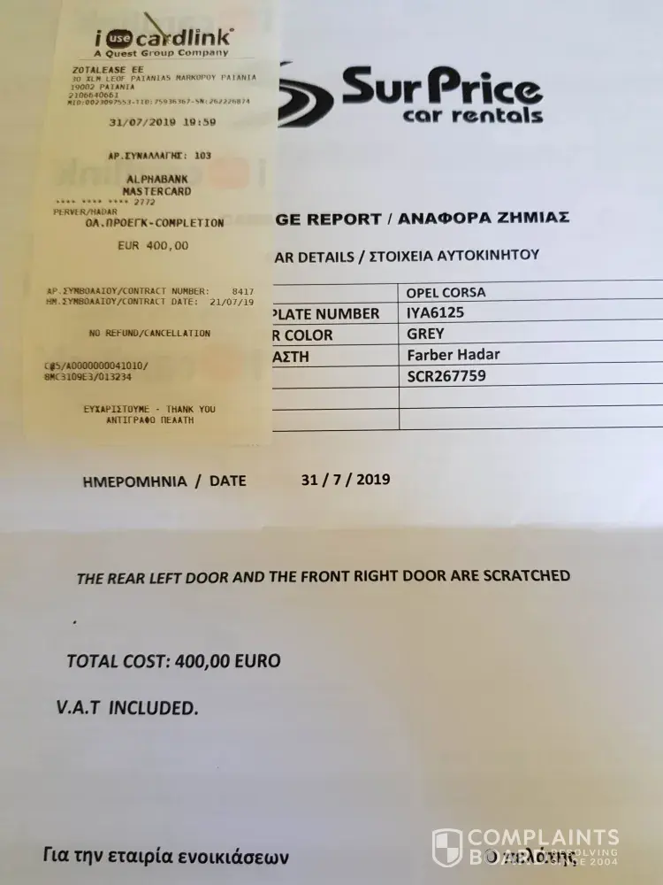 I was charged 400 Euro by the rental company on the 31st of July 2019