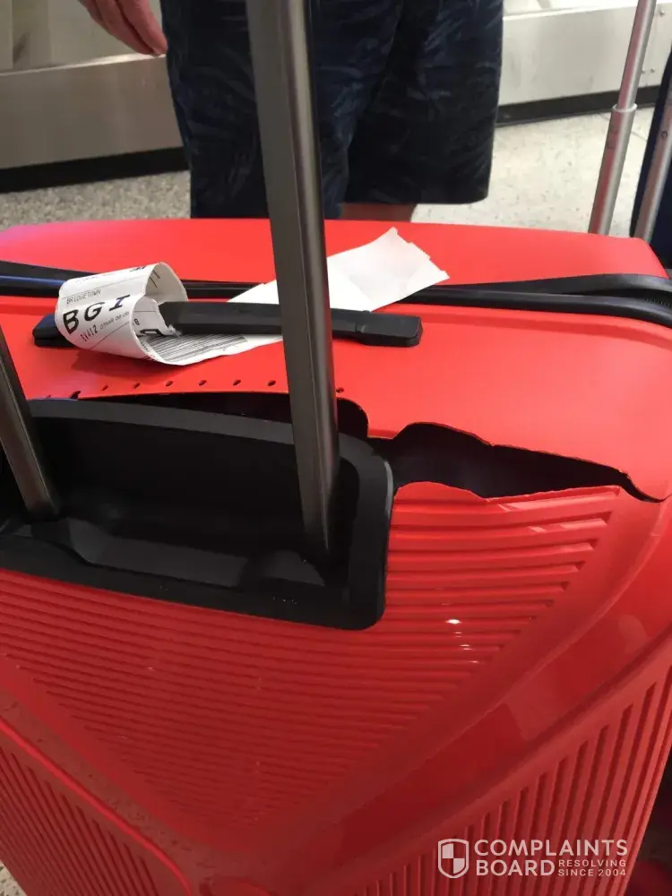 The case has been badly treated by the baggage handlers for it to be so broken. We were advised by the staff on the baggage dispute counter that we should claim the baggage damage, as it was due to mishandling while in the care of your airline baggage staff. Here are the pictures that were taken in barbados airport.