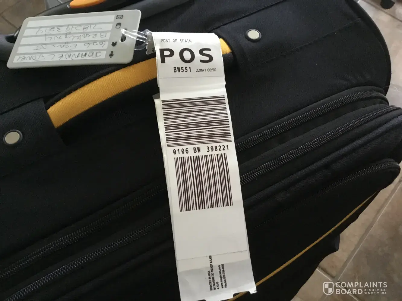 handle of suitcase broken on flight bw415 to port of spain from kingston and bw456 from port of spain to kingston