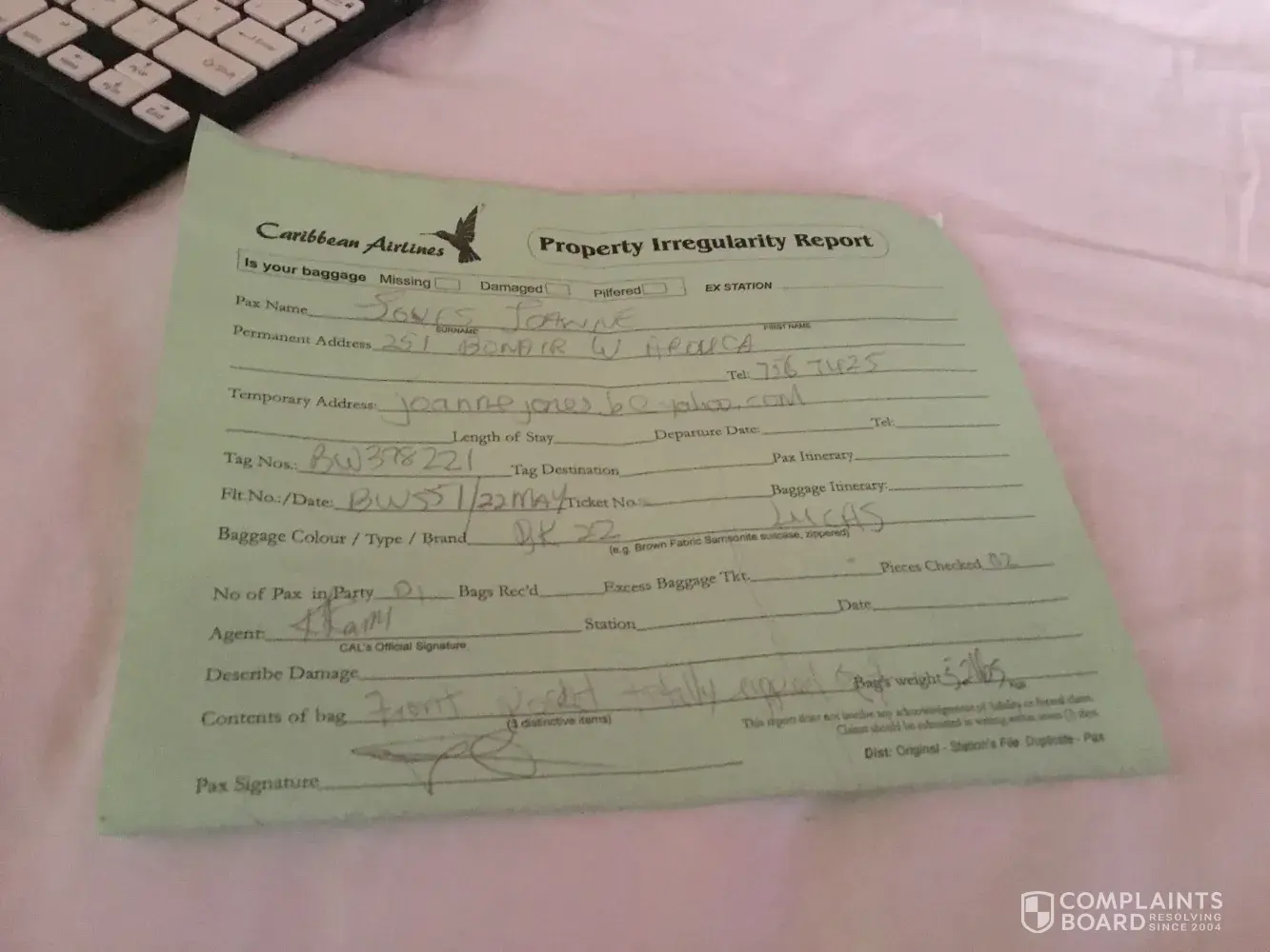 I am therefore seeking compensation from Caribbean Airlines for the broken suitcase handle.