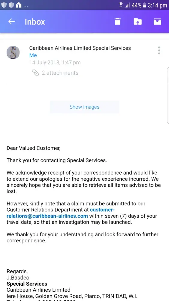 The better business bureau said that I have to contact Caribbean Airlines and receive a response or no response before I can officially file my complaint.