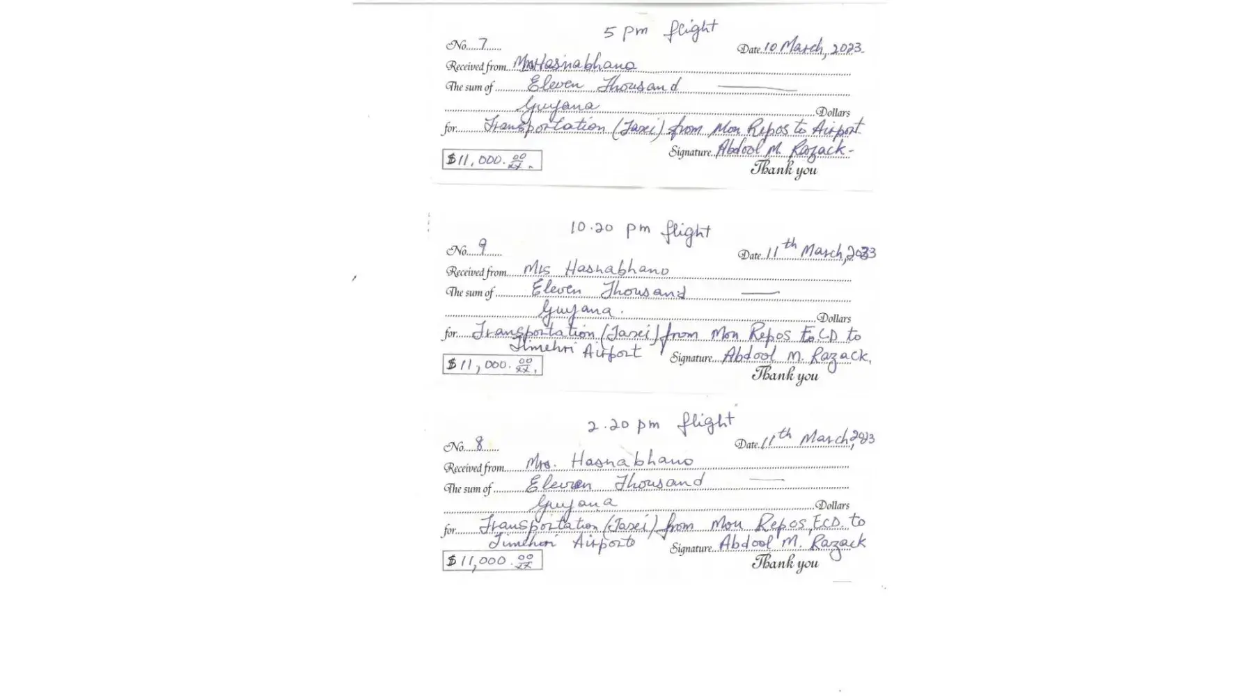 I arrived in Georgetown on March 23 at approximately 5:35pm, arrived at my siblings home at 8:30pm. Due to the fatigue, I had to cancel my trip to TT. In conclusion, the reasons I booked my ticket in Dec 2022 was to include the TT trip. I am not happy with what transpire. Thanks, Mahindra Singh