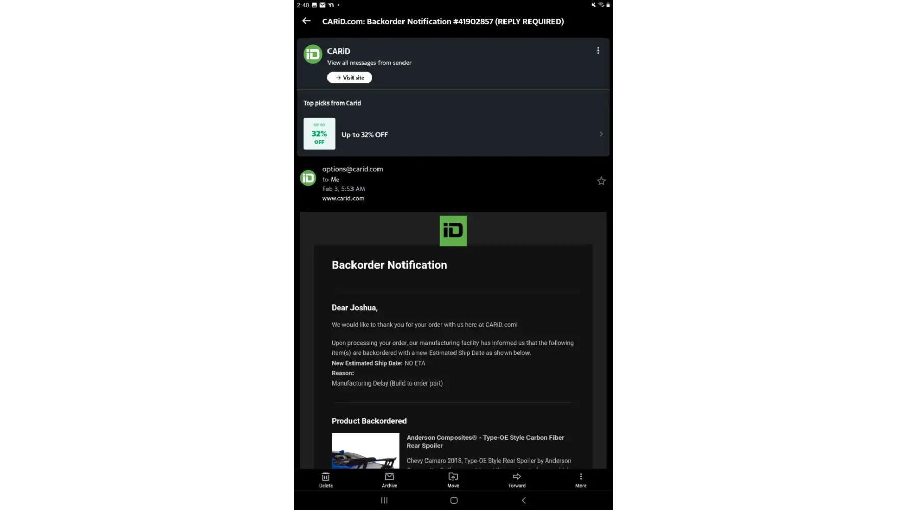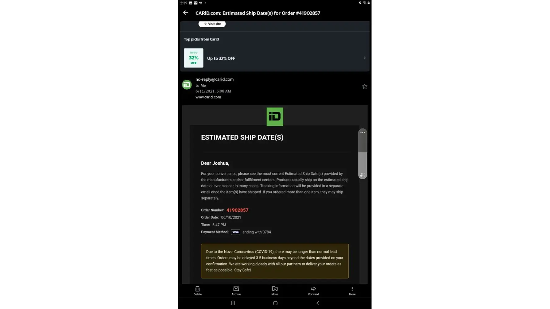 CARiD Order #[protected] {[protected]}