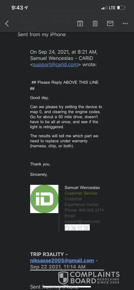 My 16 year old son purchased a Racechip performance chip for his 2011 Kia Optima SX Turbo GDI with 2.0 engine. He was sent a chip tuned for a Kia with the 1.6 engine. Was told to contact the manufacturer Racechip to have the chip "reprogrammed". He contacted Racechip and they supposedly "reprogrammed" the chip and directed him to install the chip. He did as told under the watch of a friend who is a mechanic. They took the car for a drive and the car started misfiring, the check engine light was flashing and was unable to drive. They got stranded outside of town. Since it was misfiring they changed all four spark plugs. They started car and it was doing the same thing and the check engine light continued to flash. Had car towed to a large dealership to have it assessed. Sent an email to Racechip about their engine warranty and sent email to CarID about a refund. CarID's response is below in attached photos. Racechip needs the mechanic report before they will pay and CarID is refusing refund for sending the wrong faulty part. The chip was never reprogrammed. We were lied to and scammed! My son is 16 and did his research and new what he needed and ordered the correct part. It is not his fault the wrong part was sent. He trusted the manufacturer and CarID in their advice and instructions even though it was wrong… now he has a car that he makes payments on that he can't drive! Still waiting for final word from dealership on the damage caused by this!