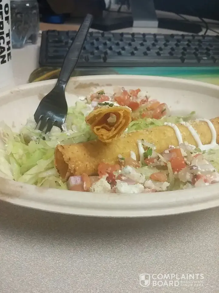 I Just visited your Santa Ana location (2511 S Bristol St, Santa Ana, CA 92704) today 10/19/17 at approximately 12:30pm, and ordered the chicken quesadilla and 3 piece chicken taquitos. The quesadilla was OK (it would have been nice to know it had onions) but the taquitos... Well, two of them were good but the center taquito had no meat in it. I'm trying to figure out how they cooked a perfectly formed taquito with no meat (I have pictures). Additionally, in preparing to leave my comments, I realized the drive-thru cashier never gave me a receipt. Lastly, In attempting to log my complaint on their web site, it would seem I can't send it... But it won't tell me why it won't go through... How convenient