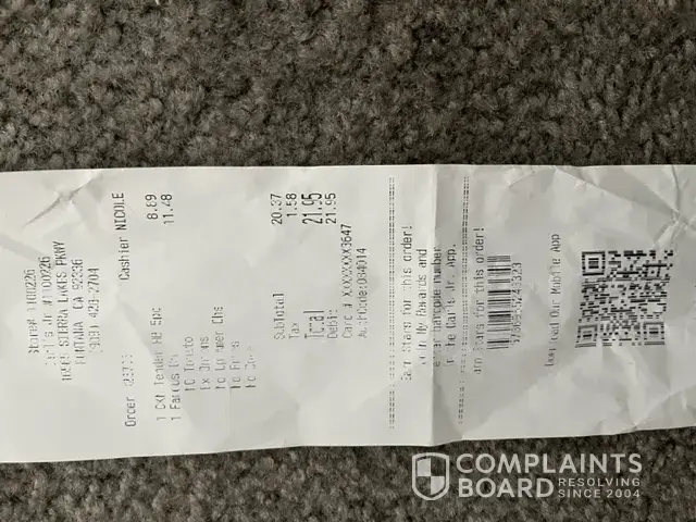 Over charge me on my burger and when I asked the employee, she said I will get a small one if I was asking for that $8,99 PRICE. I said that's what is says on the menu for a single burger only. they charged me $10.99 and when I asked for a refund she walked away and pretend someone else was ordering when no one was in line. Her name was Margarita at fresno ca 93403 on 1588 n first st.