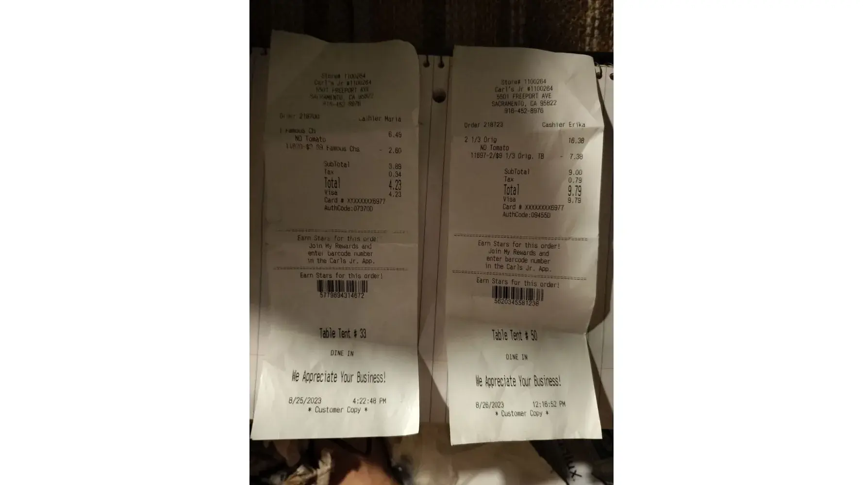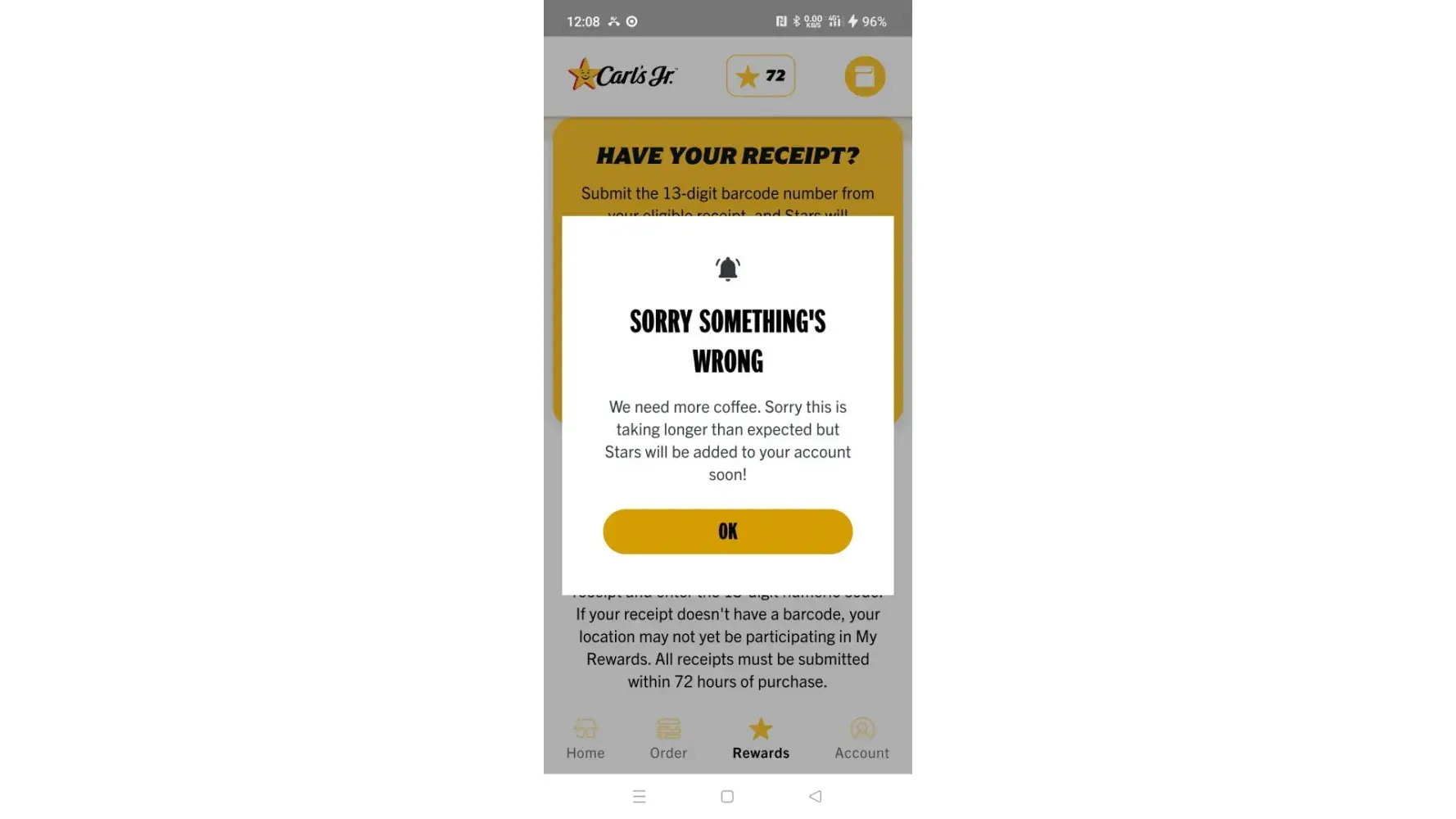 Carl's Jr. Your App does Not let me submit receipts for My Rewards