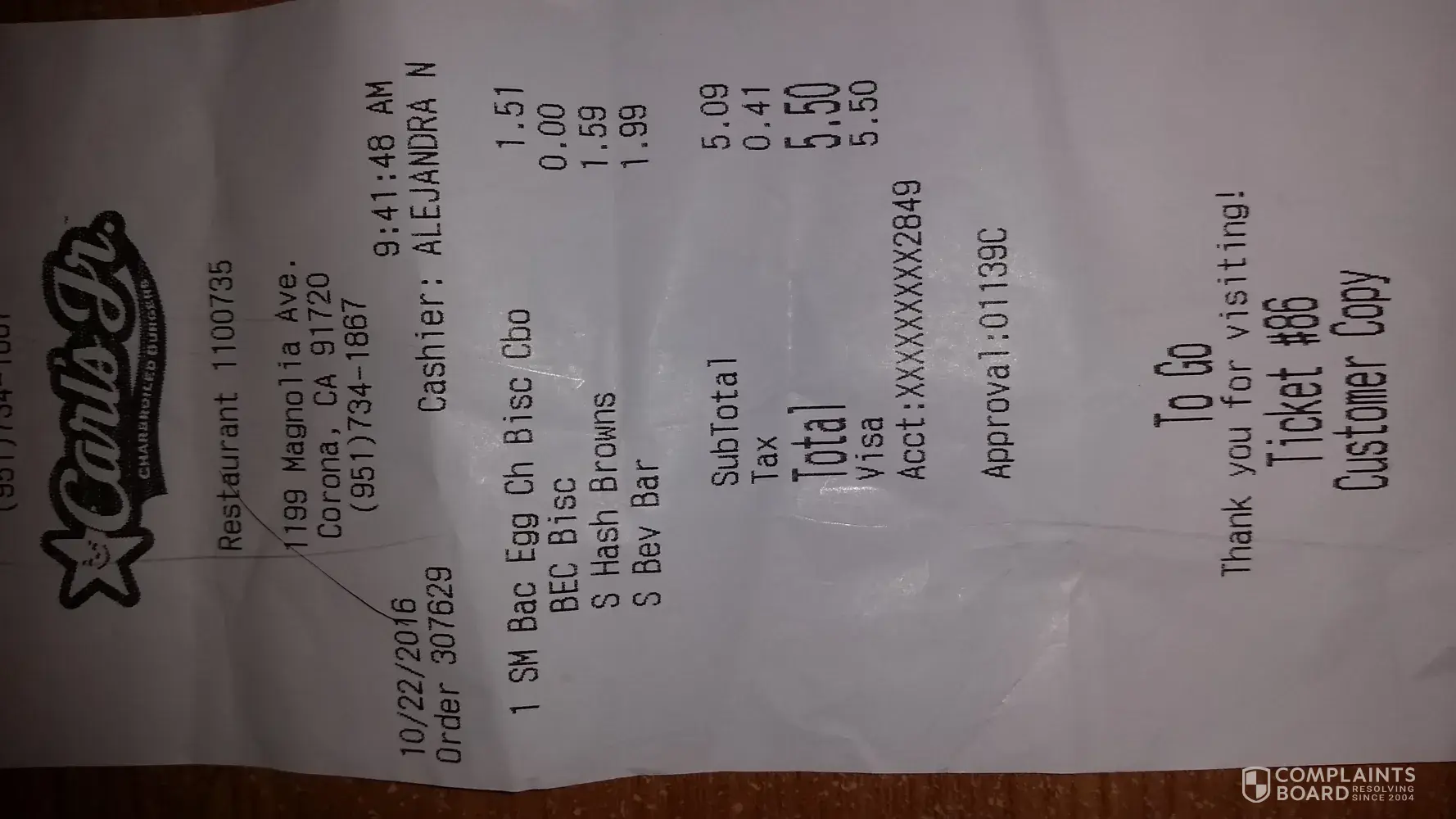 The quality of the food is below standards, and I see, a lot of other Carl Jrs complaints about food quality, Carls Jrs used to be top of the fast food chains, but looks like quality is no longer a priority for Carl Jrs.