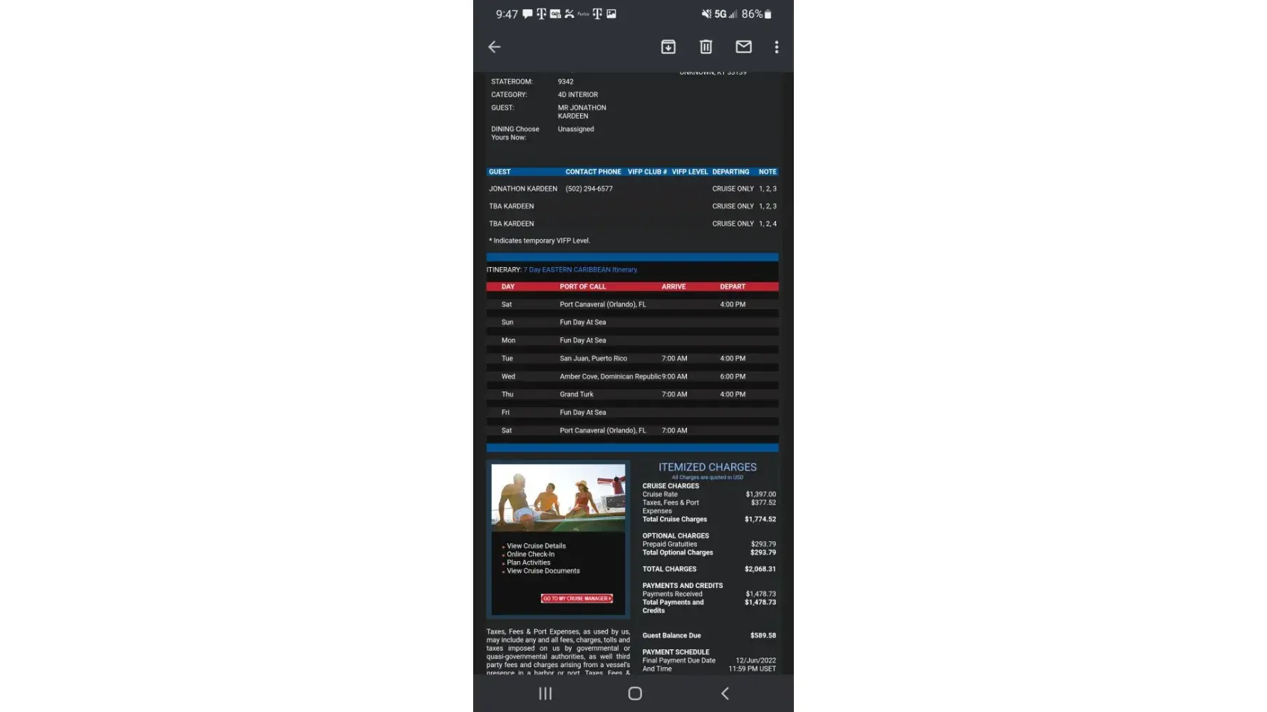 When we cancelled, the Carnival system implied we would receive this paid vacation protection as a refund in the amount of $238.