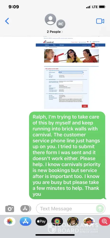 On November 6 2021 we sailed on the carnival panorama and had one of the best cruises we have EVER had! On the panorama there was a lot of excitement about the carnival Radiance (our November 2021 sailing on the Radiance was canceled so we moved over to the panorama). Once we returned home I called our carnival personal vacation planner Ralph to let him know what a great time we had and to cancel our carnival Dream cruise next October and rebook us on the Radiance. He did rebook us on the radiance but did not cancel the Dream and was supposed to work on transfer the deposit to our new radiance booking but he stopped all communication but one text that he was working on it. It's now December and the Dream was still not canceled. I canceled the Dream myself and carnival sent me a form to have my deposit transferred to the radiance. Dream P02CB6, radiance R68HC0 my VIFP number is [protected] platinum. I filled out the carnival form and it would NOT SEND! OMG! I love carnival but what's up with NO CUSTOMER SERVICE? Please help carnival and not only look for new cruisers but keep the loyal cruisers you have! Don't t shut us out