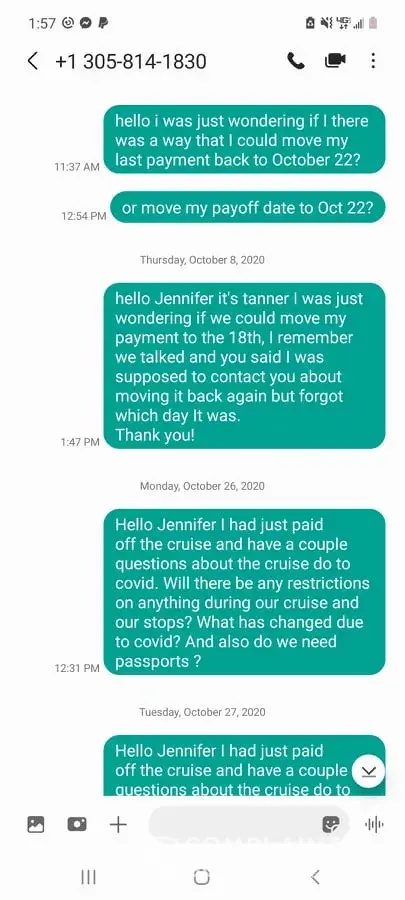 Still no response on any excursions, still no response on why we were changed to a destination 40 miles from Miami, Still no response on why my travel agent hasn't even told me anything about this. I have contacted my travel agent roughly 15 times over the course of two years trying to plan this cruise and I've gotten 2 responses over the course of two years. Once again Ill be planning trips outside of cruises because of this experience. I am better off going to the island via plane and not getting tossed around like a rag doll for my cash. Here is a picture of how horrible your travel agents are at responding to people over the course of almost 2 years!