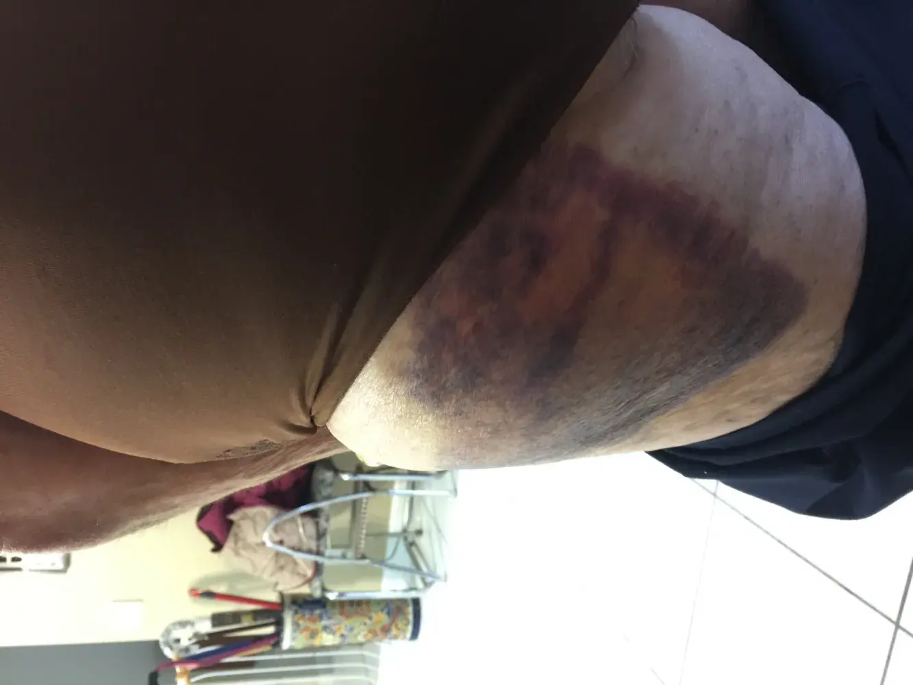 As the days passed, mom was in a great deal of pain and she developed a very large hematoma on her left upper outer thigh, resulting in the ER visit.