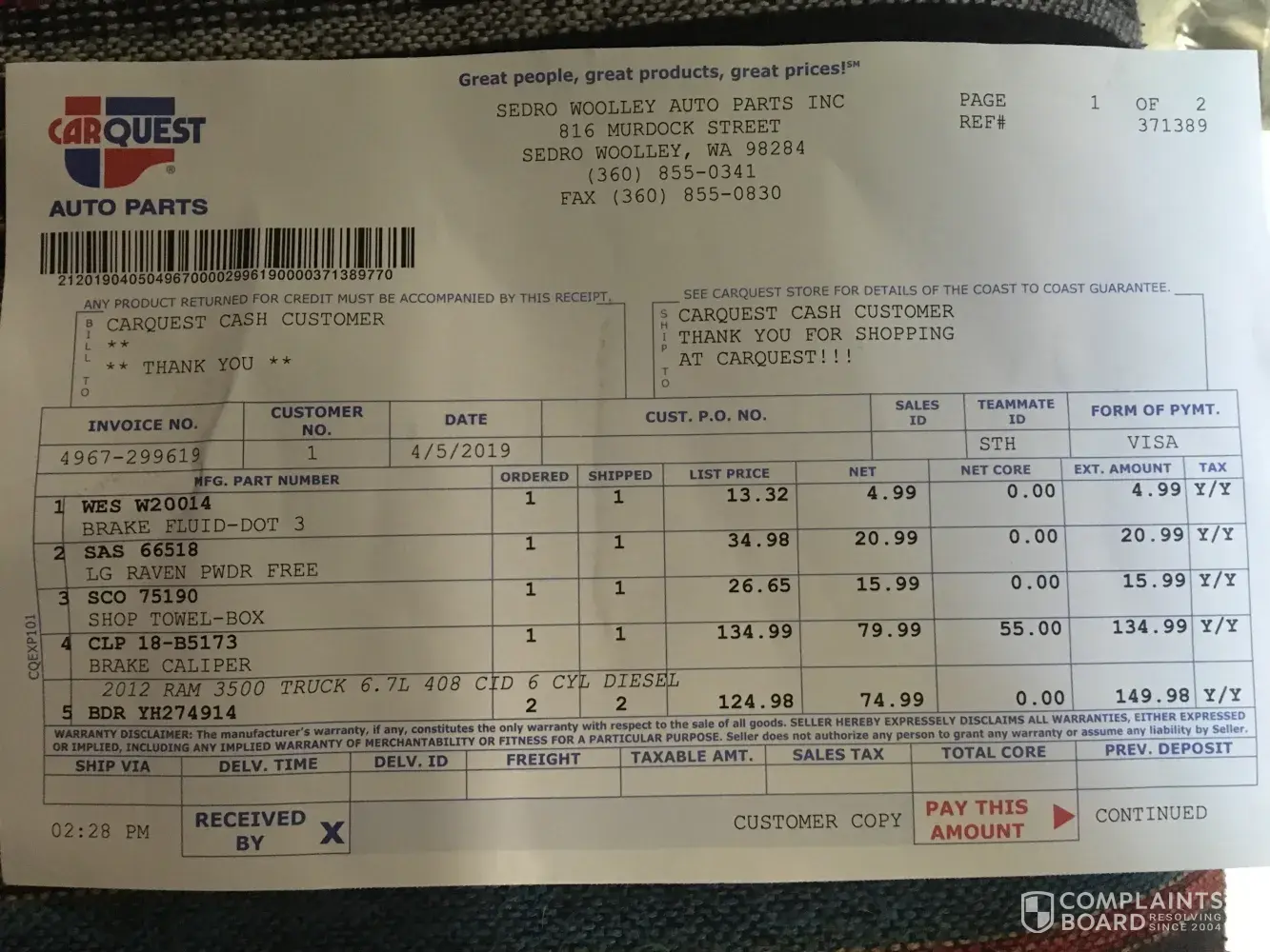 Read full complaint and 13 commentsCarquest Auto Parts complaints: history and resolution overview
