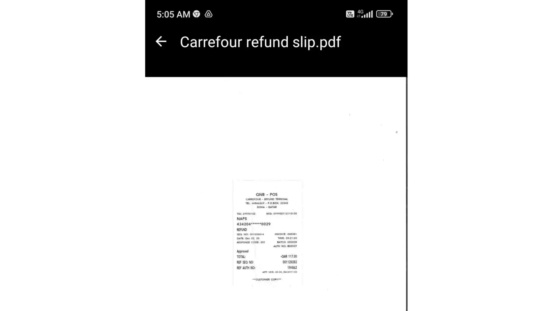 I did purchase from my debit card money deducted same time on purchase now the carrefour staff is playing with the customer if Qatar Riyals 117