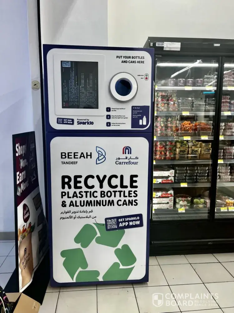 I came to Carrefour to dispose my empty bottles in SPARKLO recycle machine. I look for manager to ask about the machine.