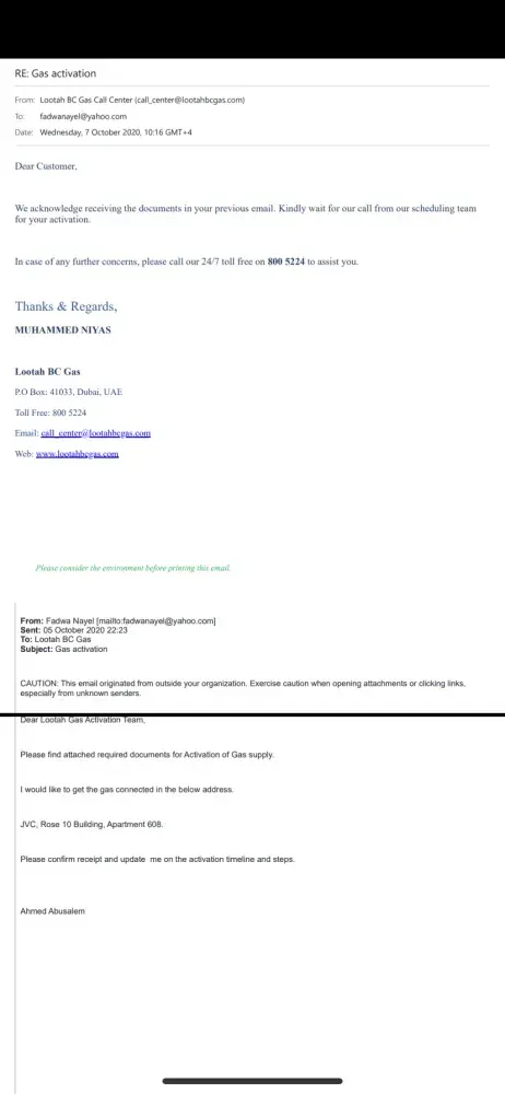7th October > Lootah Gas received the request (Email available)