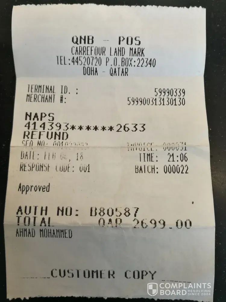 I've called a number of times & visited carrefour branch (customer service) more than 5 times, they always reply with the same answer (we will check and call you back) and nobody called ever.
