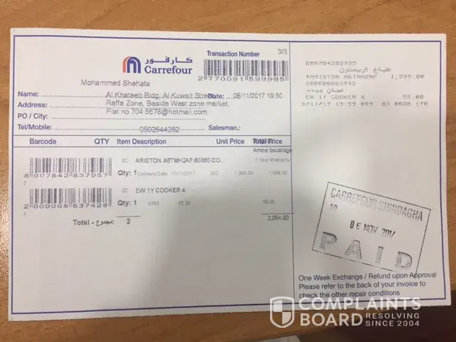 As you can see, the service I got from CARREFOUR-Egypt is not acceptable and tarnishes CARREFOUR reputation, and simultaneously abuses my rights as a customer.