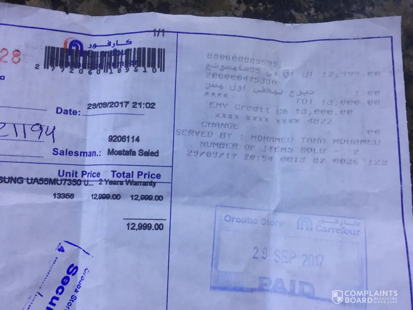 I have been purchased two items through Carrefour last week and i have asked them many time to send me the invoices with my extended warranty since that date and till now I didn't receive anything from them I have called them daily regarding tgat matter and no response till now please I need your help for that it's seems not original or there's something hiding for there's no transparency from them.