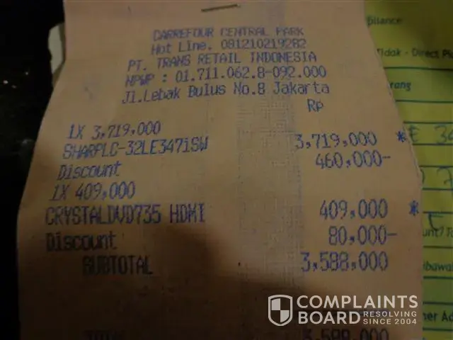 I was so surprised when the staff serving me at the television and DVD section from Carrefour Central Park told me that I need to buy the cable at IDR100.000 from another staff, as he is selling at a cheap price. I was indeed very upset and feeling something very fishy immediately. Somehow, I was certainly not convince and told the staff that I need to see the manager to clarify this. It’s taken about 10 minutes for both the team leader and manager to appear. However, the manager was seen standing at a corner and have the team leader attending to me. When the team leader arrive, I explained to him that the cable should be come with the DVD set which I saw in Carrefour Mangga Dua and to another surprised that he told me that I need to wait if I want to purchase the DVD set because they will get the cable from the store. Otherwise, you can choose not to purchase in an impolite manner. Somehow rather, I just don’t feel it is right to get from the store, as the cable should be packed in the DVD set in the box.
